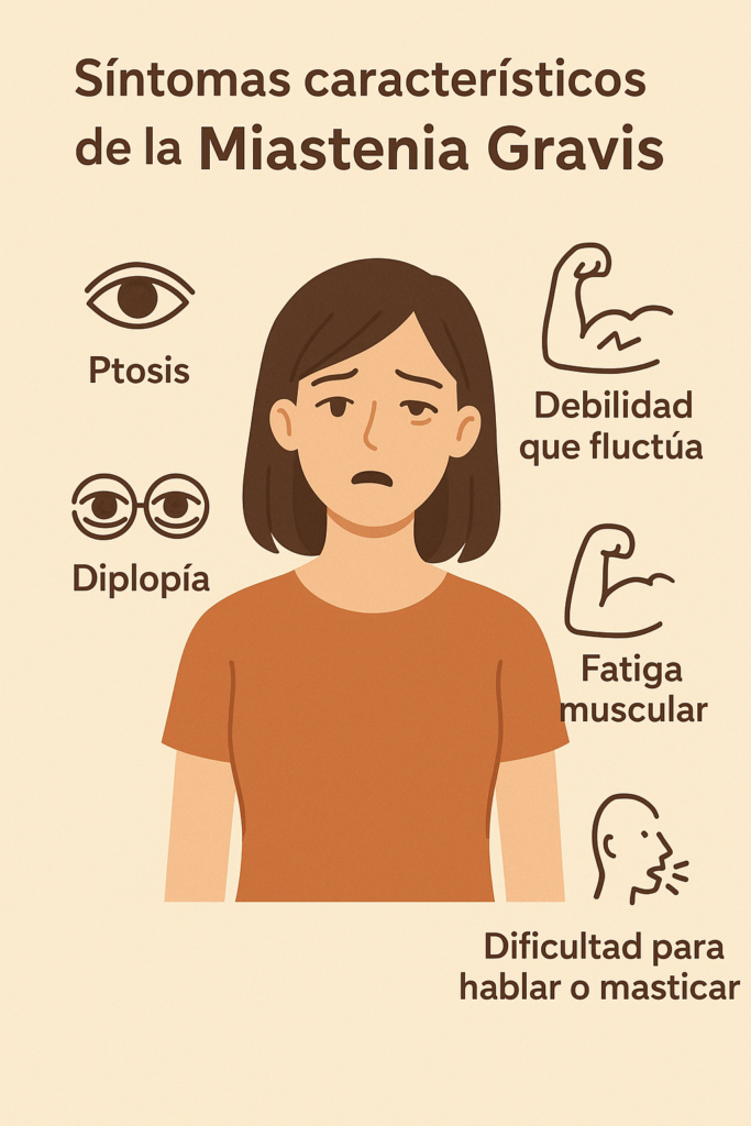 La Miastenia Gravis es una enfermedad autoinmune en la que los anticuerpos bloquean la comunicación entre nervios y músculos, provocando debilidad fluctuante.